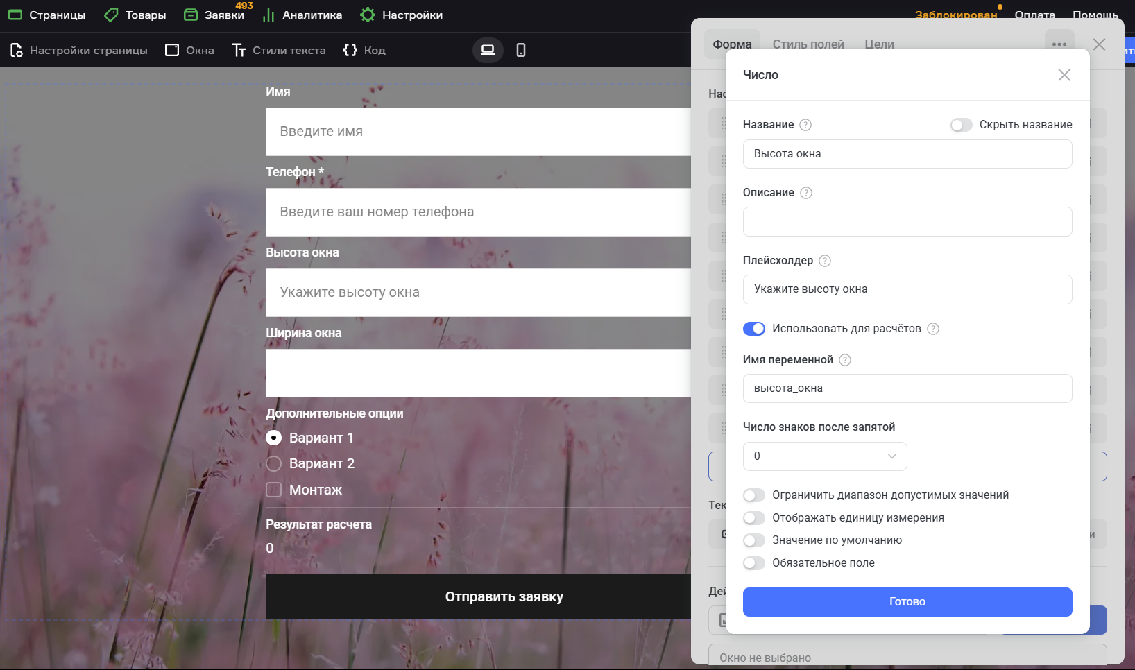 Калькулятор полей доступен только в вертикальных формах. Не поддерживается горизонтальной формой, корзиной или квизом.