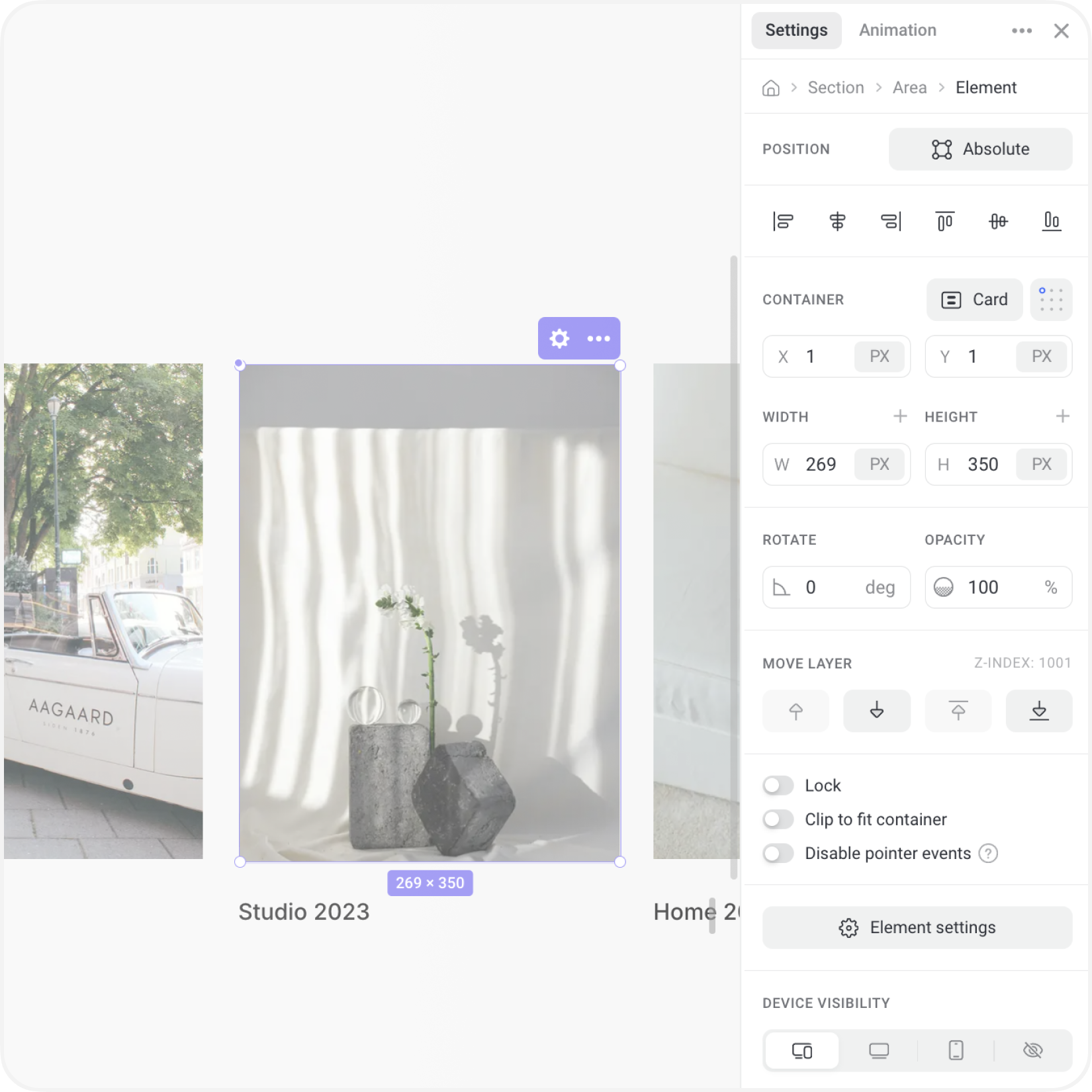 Create unique online stores with product elements using absolute positioning.