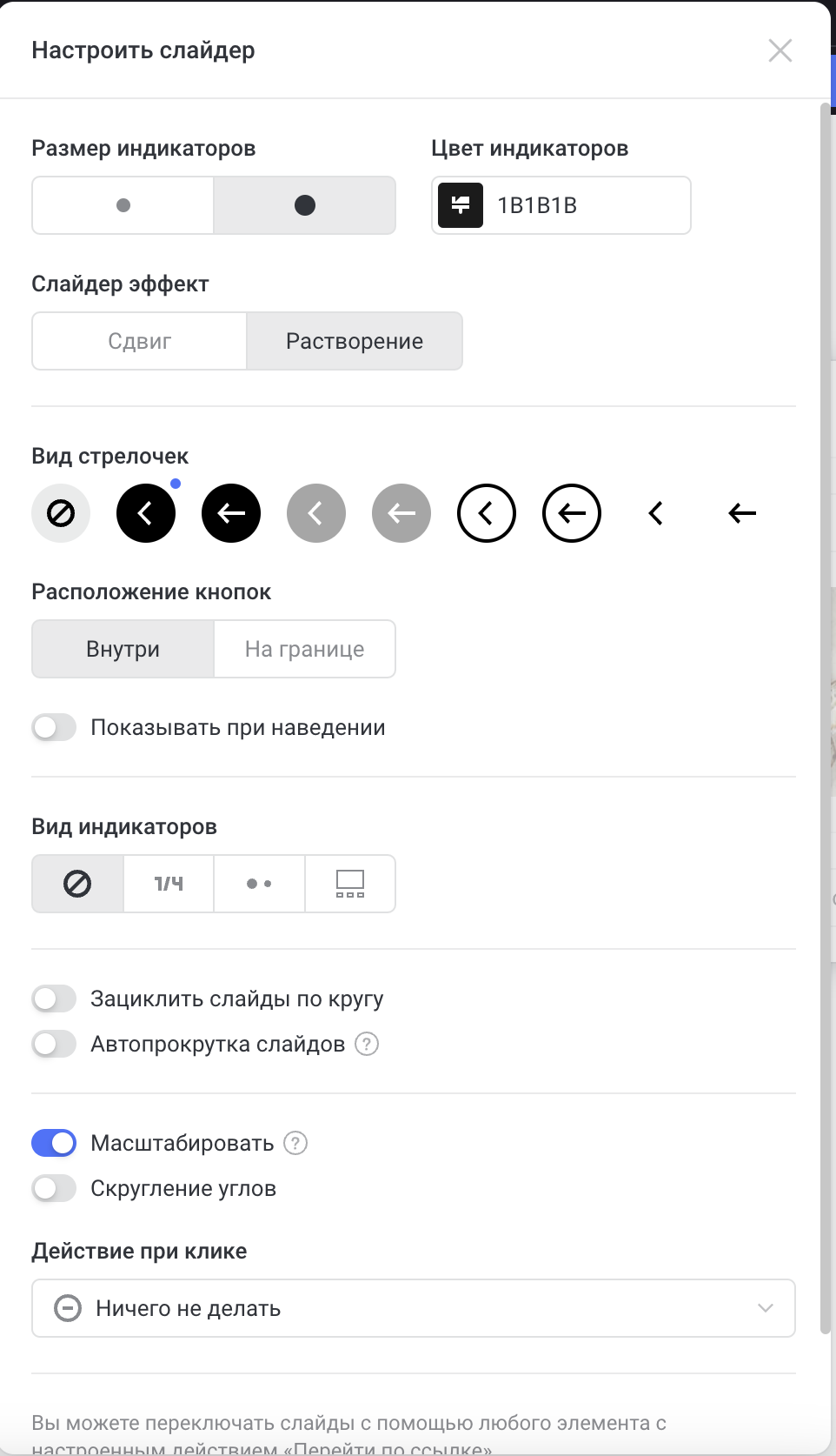 Настройки слайдера элемента